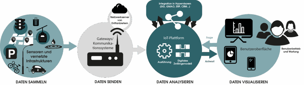 - IoT – Vernetzte Objekte, die Daten in Echtzeit erfassen und übertragen (Internet of Things).