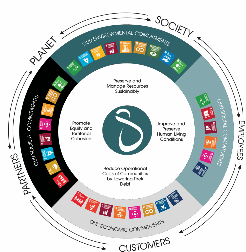 At SEVⓔ, we firmly believe that social and environmental responsibility is not just an initiative but a true mission guiding all our actions. As a mission-driven company, our purpose is to support the environmental, digital, and social transitions of territories by providing access to intelligent and responsible technologies.